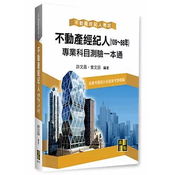 詳細資料ISBN:9789862693124 規格:平裝 / 普通級/ 單色印刷 / 初版 出版地:台灣 內容簡介 本書內容包括全部專業科目(即土地法與土地相關稅法概要、不動產經紀相關法規概要、不動產估價概要、民法概要等四科的104~88年測驗題型)。內容收錄相關重要法規與歷屆試題,重要法規並以灰框框的方式呈現,加深讀者印象,於考前詳讀並輔以歷屆試題演練,必能大大提升實力,達到事半功倍之效。 本書之第一部分土地法規、第二部分土地相關稅法、第三部分不動產經紀相關法規及第四部分不動產估價由許文昌老師編寫,建議讀者先逐條詳悉法條,了解原委後立即練習附隨各法條之後的歷年試題,效果奇佳。第五部分民法由曾文田老師編寫,民法試題往往以實例題型態出現或一個題目須引用數個法條始能正確作答,為便於查閱法條並歸納歷年試題,爰將歷年試題打散並按民法條文章節編排,讀者可快速了解命題重點。 此外,由於法規修正頻繁,本書解答原則上以現行最新法規為準,不採考試當時法規。須特別強調的是,本書只針對104~88年較難的題目加以難題解析。建議讀者可配合作者另著:《土地法與土地相關稅法概要》 《不動產經濟相關法規概要》 《民法概要》 《不動產估價概要(基礎篇)》 《不動產估價概要(實戰篇)》。等進行全面演練。如此,必能在知己知彼下掌握趨勢,完成準備,達成目標。 不動產經紀人考試之專業科目主要以法規為命題對象,而且命題範圍非常明確,只要考生肯下功夫勤讀此書,相信通過考試取得證照並非難事。 |